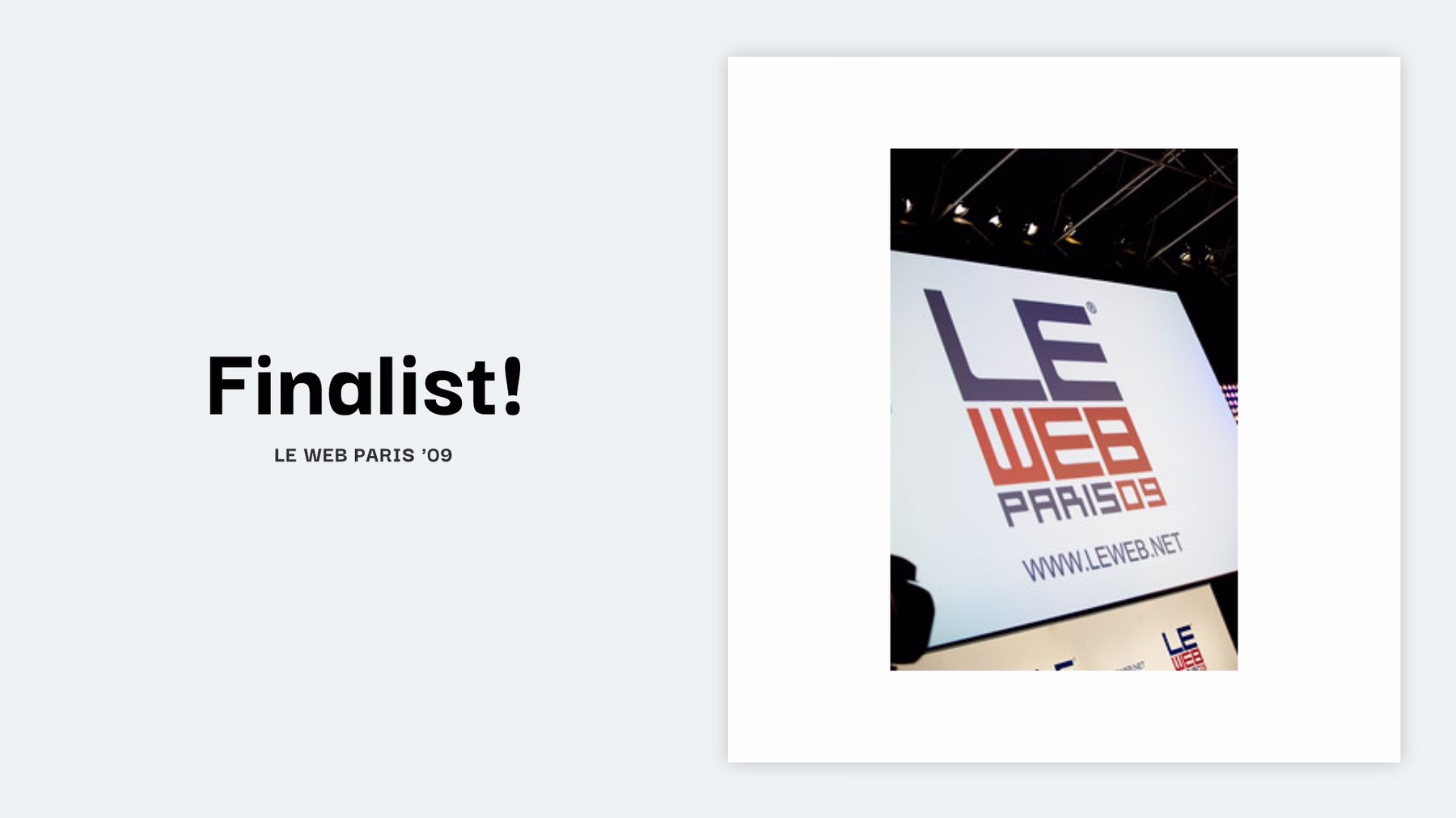The Task.ly team was proud to be featured as a 2009 Le Web finalist, and included a slide describing the honor. We redesigned this slide using our Headline template, which made it easy for us to include text on one half of the screen and an appropriate photo on the other side.