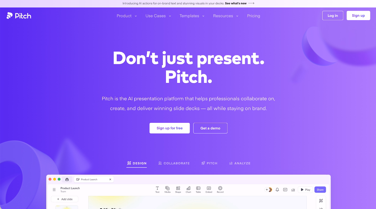 Pitch is a presentation maker built with the startup founder in mind. Its main job is to help you build the perfect deck to get funded. The platform guides you through a structured process, using templates that follow the proven formula for successful pitch decks. Pitch is also a web-based AI presentation platform, but its focus is less on general business use and more on nailing that one critical presentation. It has great collaboration tools for founders working with their initial team to get the story just right before sending it off to VCs.